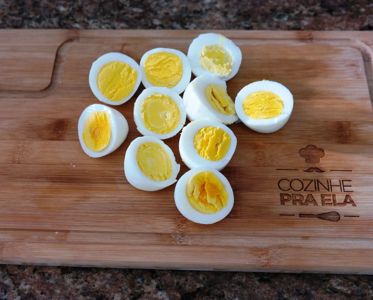 4- Deixe no fogo por uns 20 minutos e acrescente mais Água aos poucos se for necessário. Paralelamente, cozinhe os Ovos, descasque-os e corte-os ao meio.